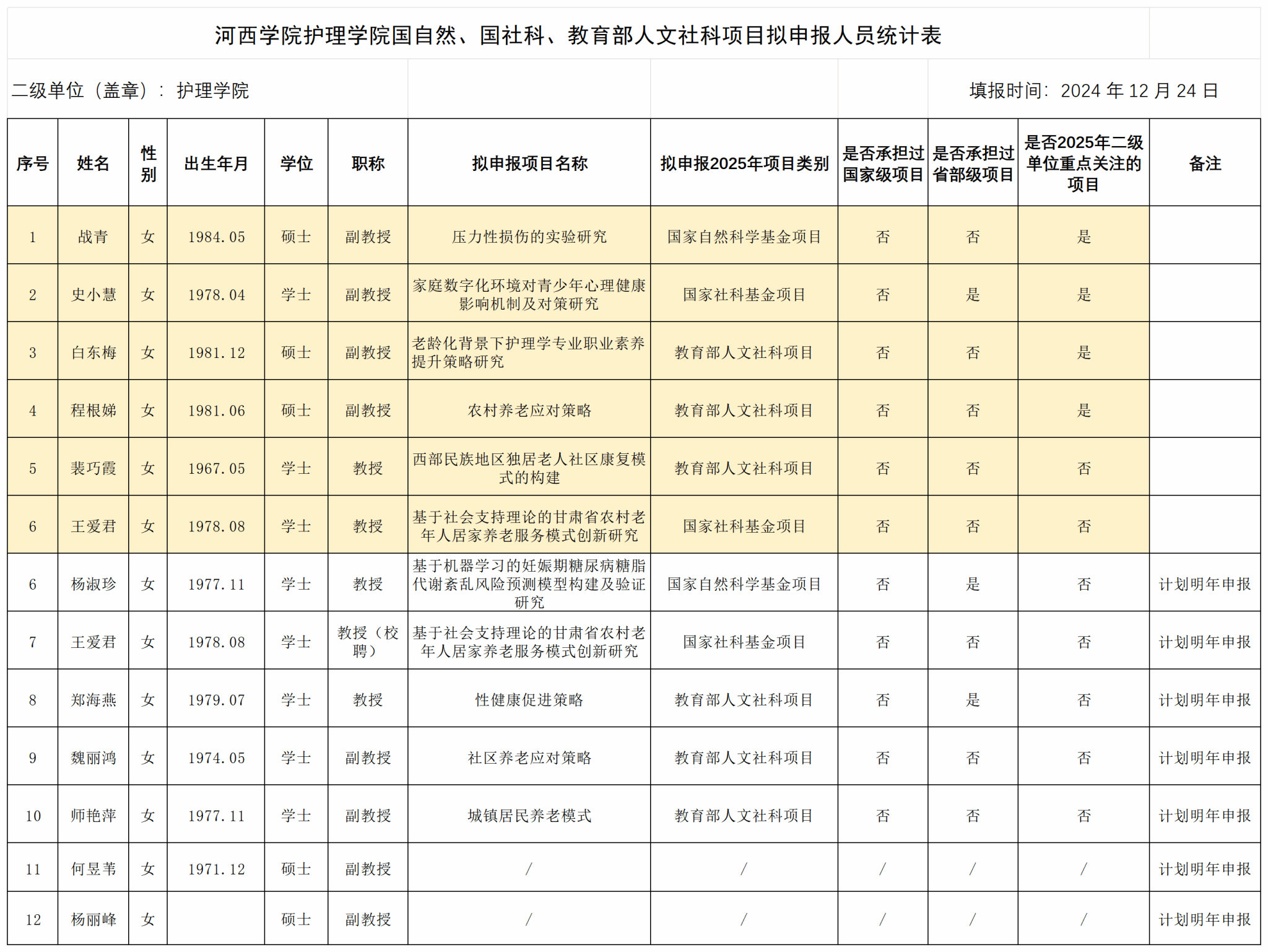 PA视讯国自然、国社科、教育部人文社科项目拟申报人员统计表