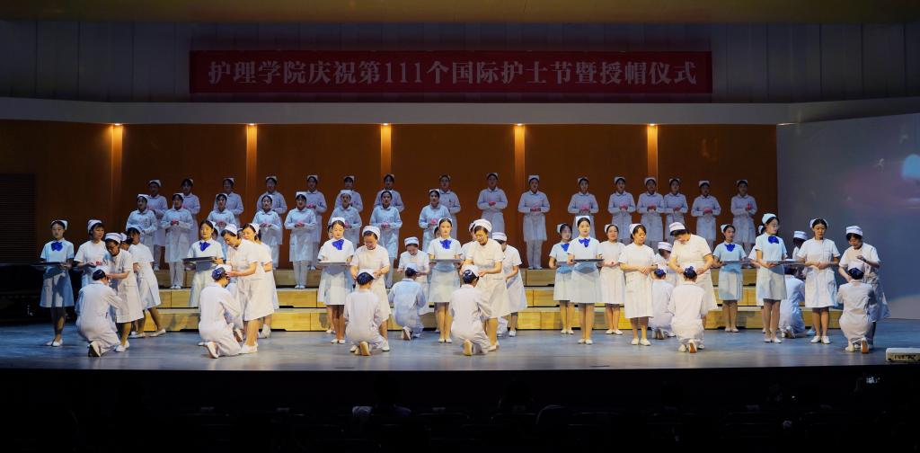 活动以“感知护理”“走近护理”“奉献护理”三个篇章展开。情景史诗表演让与会师生重温现代护理的发展历程;护理礼仪表演和情景技能展演,展示了护理学子深厚的人文情怀与扎实的专业技能;老中青三代教师与护理学子以《我是一名护士》为题的配乐诗朗诵、2022届毕业生的云端寄语感人至深;全体教师为即将奔赴实习岗位的护理学子授帽并集体宣誓;对学年涌现的教师标兵及优秀员工进行了表彰奖励,活动在歌舞《中国护士之歌》中落下帷幕。